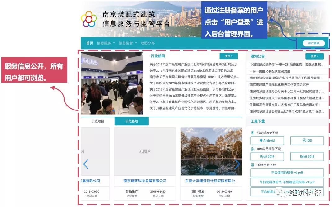 2019年,南京新批准一批BIM示范基地和示范项目。其中BIM示范基地涵盖了:科研院所、设计单位、施工单位以及咨询单位。